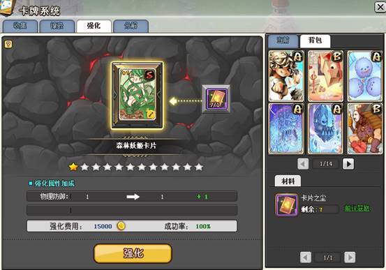 《进击的波利》不仅将卡片运用在了属性加成上,还加入了卡片镶嵌、卡片强化、卡片分解三种系统玩法;
